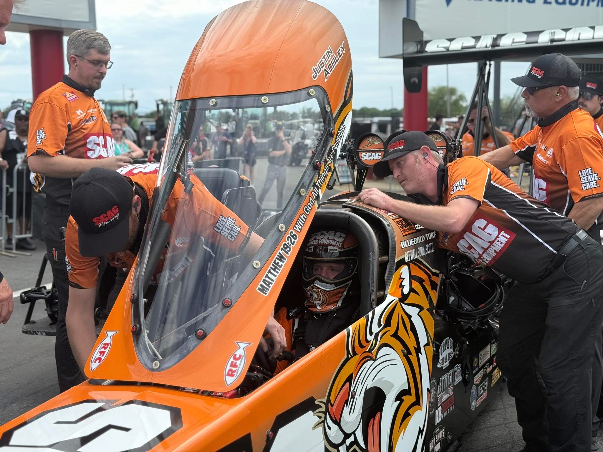 Justin Ashley and the SCAG Power Equipment Top Fuel team faced a challenging qualifying effort, ultimately securing the No. 15 position with a best run of 3.842 seconds at 329.34 mph. On race day, Ashley lined up in a competitive opening quad alongside No. 2 qualifier Leah Pruett, No. 7 qualifier and teammate Will Smith, and No. 10 qualifier Ida Zetterström. Ashley delivered a standout performance off the starting line with a .032-second reaction time, then powered to a 3.699-second pass at 336.74 mph to advance to the second round. Pruett secured the second transfer position with a 3.673 at 333.16 mph, while Smith posted a 3.748 at 330.47 mph and Zetterström ran a 3.803 at 334.90 mph, both falling short of advancing. In the second round, Ashley faced off against Pruett, Doug Kalitta, and Maddi Gordon. Once again, Ashley was quickest on the starting line with a .036-second reaction time, but was unable to maintain the lead downtrack. Kalitta drove to the round win with a 3.707 at 339.02 mph, while Pruett secured the second transfer spot with a 3.749 at 333.66 mph. Gordon recorded a 3.767 at 333.16 mph, and Ashley crossed the finish line in 3.774 seconds at 331.61 mph.